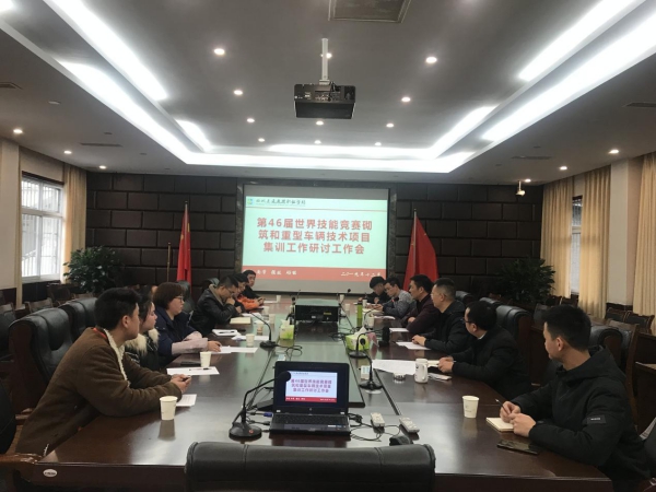2019年12月31日下午2::00,我校在温江校区综合楼一楼召开了第46届世界技能竞赛砌筑和重型车辆技术项目集训工作研讨会。校长王永莲、党委书记曾祥亮、副校长刘新江、建工系主任王新宇、汽车系副主任黄仕利、集训指导老师、参赛选手等参加会议。会议由教务科科长夏宇阳主持。