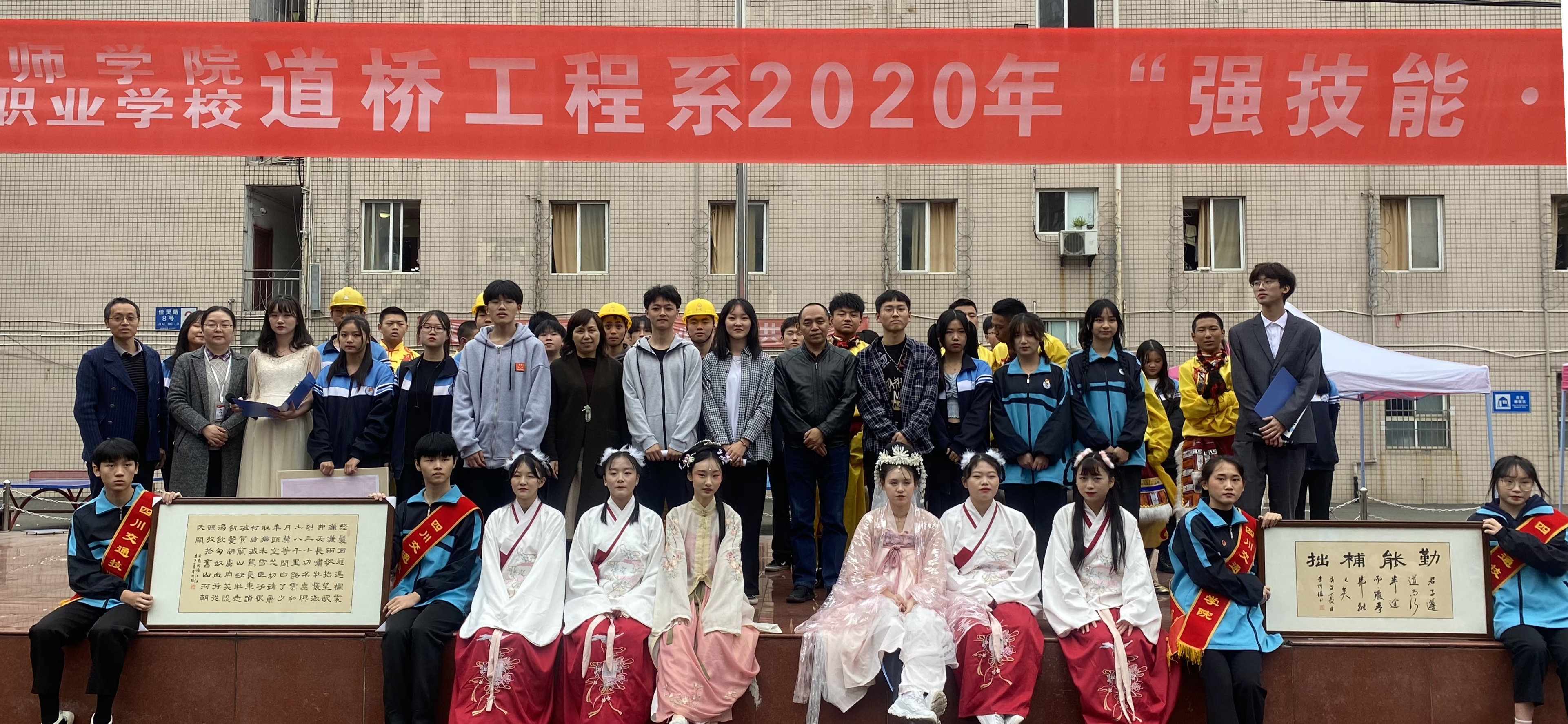 本次主题活动共计60分钟,分为10个环节。在技能传承环节,道桥工程系工程测量先锋队的同学分工明确,各司其职,熟练运用自身掌握的测量技能将“道桥人”团队合作的精神和工程实践能力发挥地淋漓尽致,显示了学生扎实的专业基本功;在书法表演、大合唱、民族舞蹈等才艺表演环节,同学们展现出极强的爱国主义精神和良好的人文综合素养,是我系“勤学做人,德才兼备塑造好工匠之魂”的文化素质要求的集中体现。活动在一派热烈欢乐的气氛中落下了帷幕。