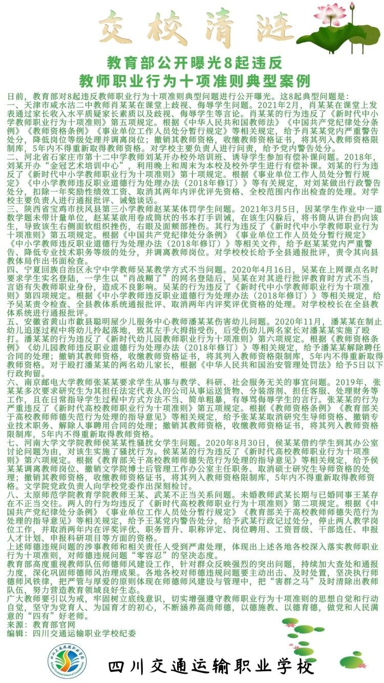 交校清涟之师德师风案例-四川交通运输职业学校-官方网站