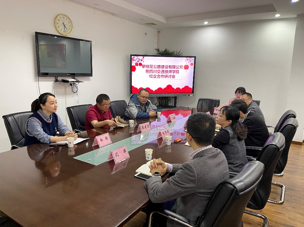 4月25日,受学校建筑工程系邀请,攀枝花公路建设有限公司负责人一行三人到校参观座谈,建筑工程系主任张秀娟、书记周剑、副主任沈洋和部分骨干教师陪同参观并参加座谈。