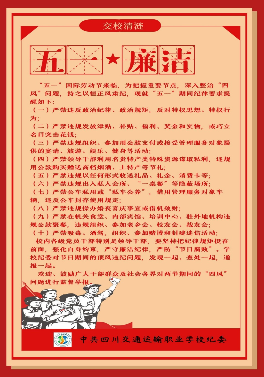 五一廉洁提醒-四川交通运输职业学校-官方网站