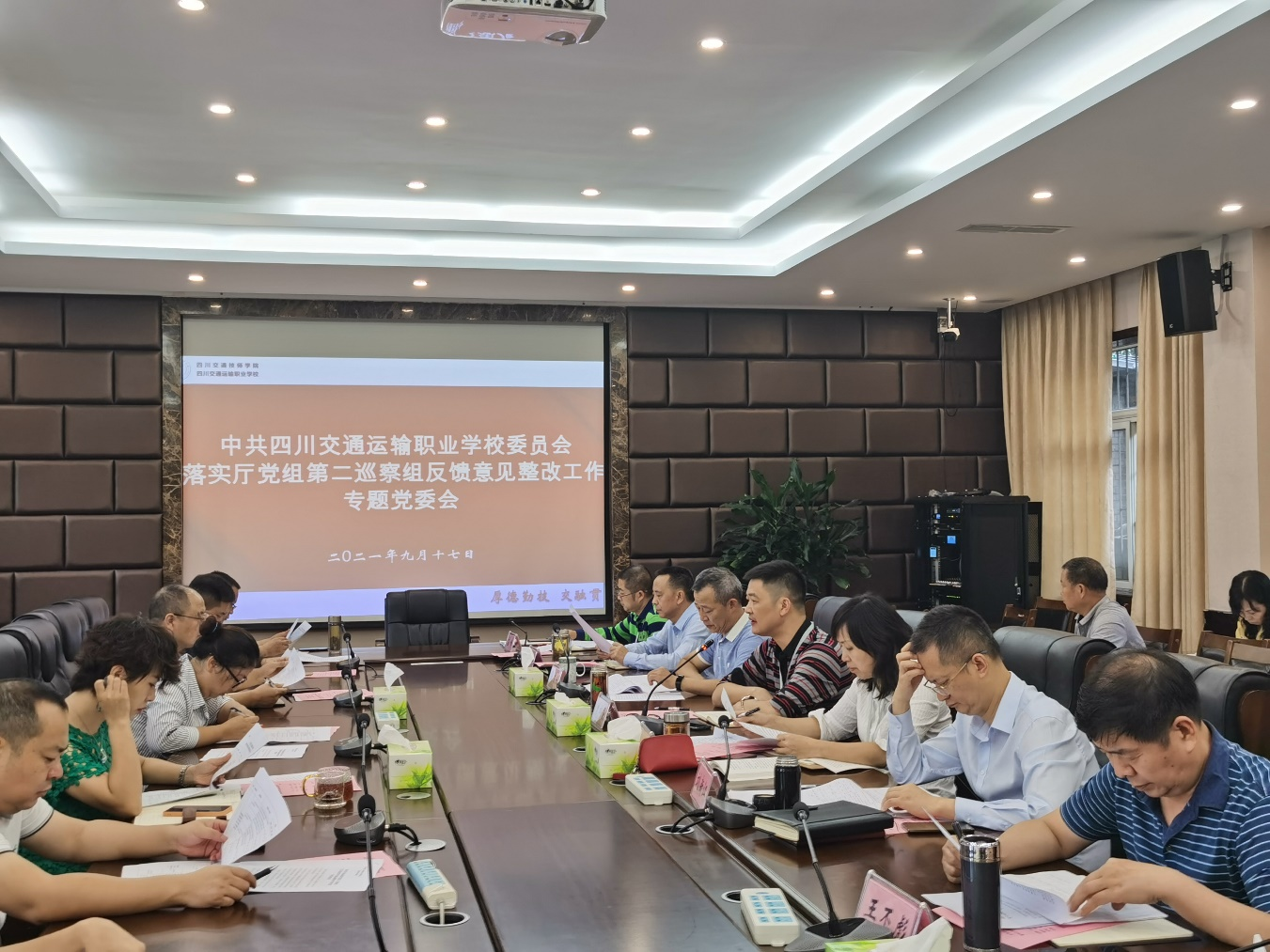 会上,学校办公室汇报《中共四川交通运输职业学校委员会落实厅党组第二巡察组反馈意见整改工作方案》,各牵头部门研提意见,校领导班子成员就分管领域提整改工作要求,逐项研究具体整改措施,并明确责任领导、责任部门及整改时限,确保整改方案切实可行,整改工作有效到位。