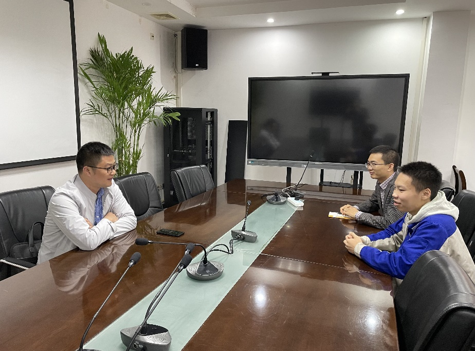 10月12日,学院党委书记、院长曾祥亮在红牌楼校区行政楼二楼会议室与获得全国乡村振兴职业技能大赛砌筑赛项金奖的师生团队亲切座谈。