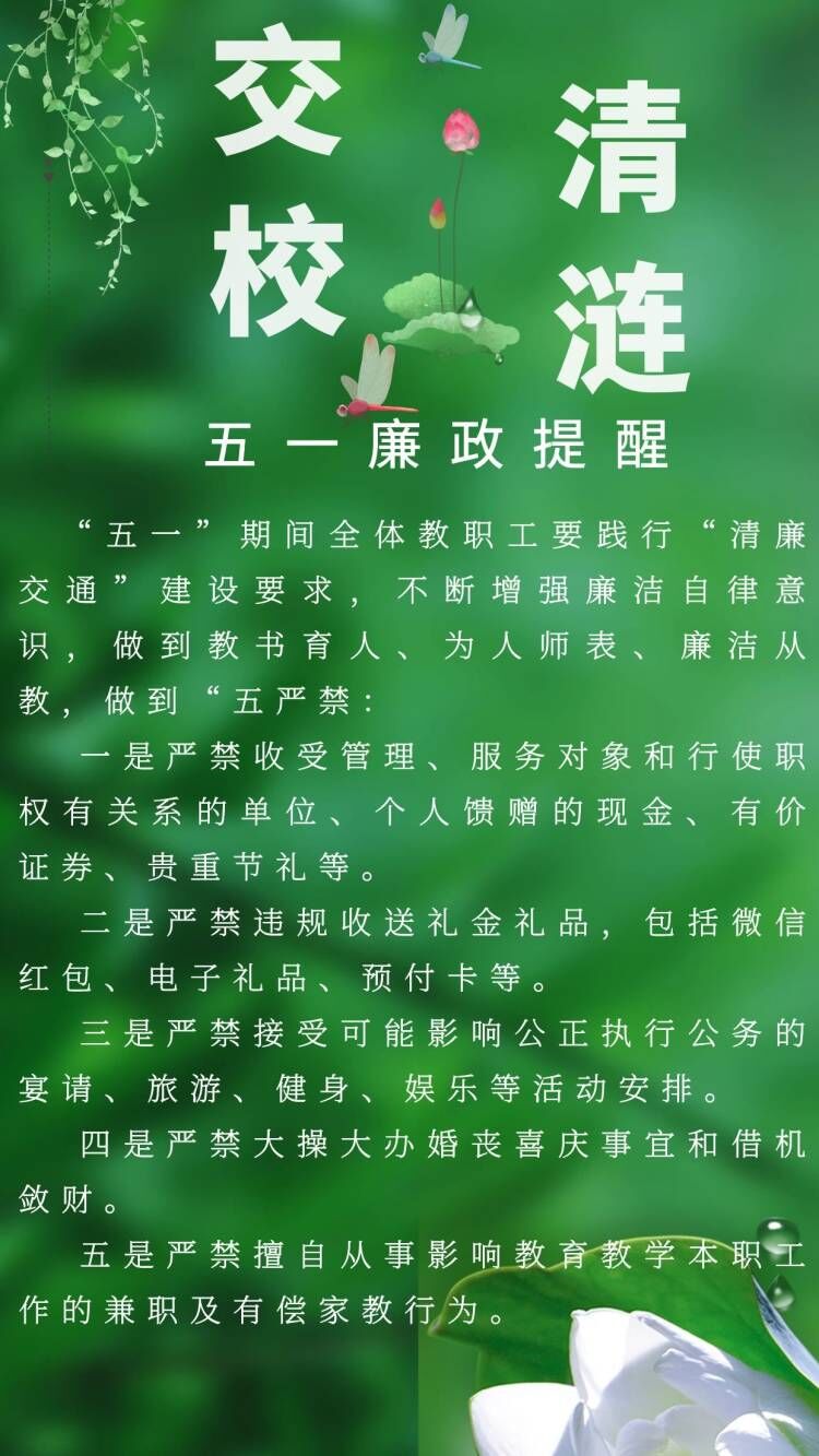 交校清涟之五一廉政提醒-四川交通运输职业学校-官方网站