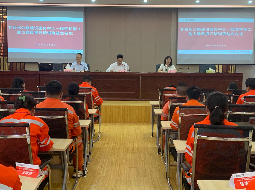7月3日上午, 甘孜州公路建设服务中心2022年第一期一线养护职工能力素质提升培训结业典礼在红牌楼校区圆满举行。甘孜州公路建设服务中心党委书记、主任四郎益西,学校党委委员、副校长、工会主席周萍出席仪式,学校党委委员、副校长刘新江主持会议。