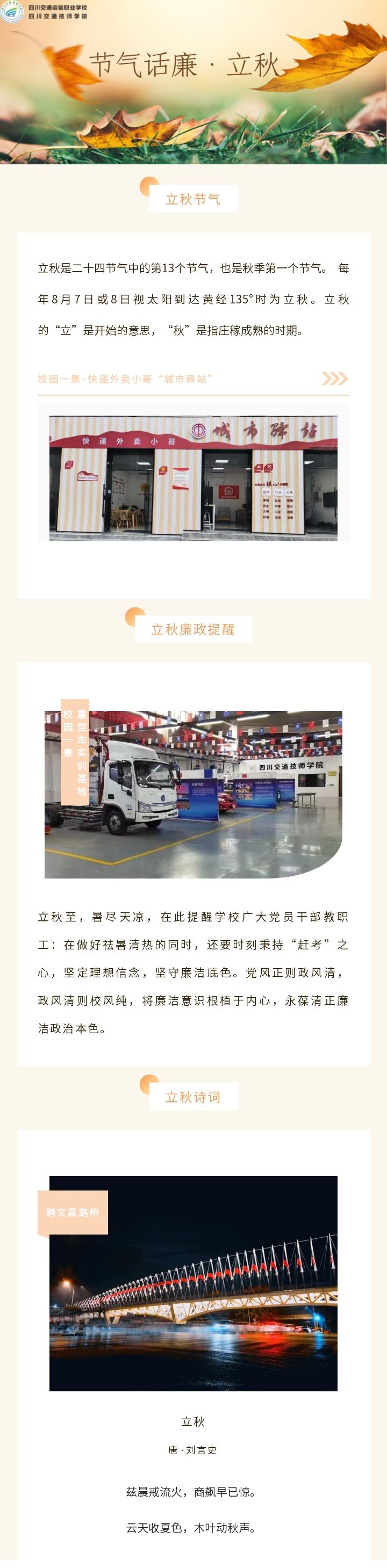 交校清涟之节气话廉立秋篇-四川交通运输职业学校-官方网站
