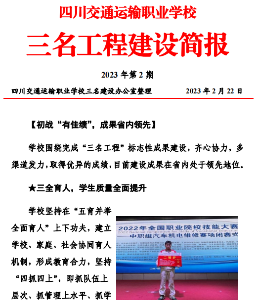三名工程建设简报第2期-四川交通运输职业学校-官方网站