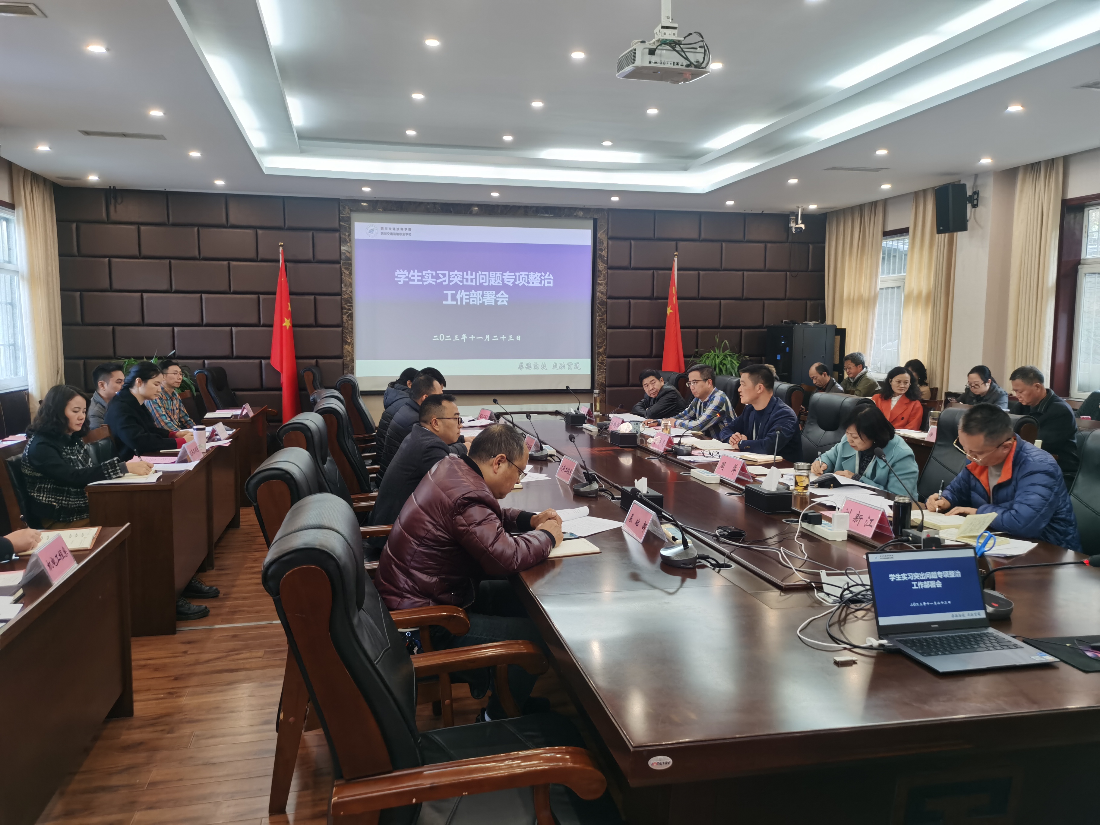 11月23日,学校召开学生实习突出问题专项整治工作部署会,贯彻落实省教育厅、省人社厅《关于开展职业学校学生实习突出问题专项整治工作的通知》文件精神,部署学校学生实习情况排查相关工作。