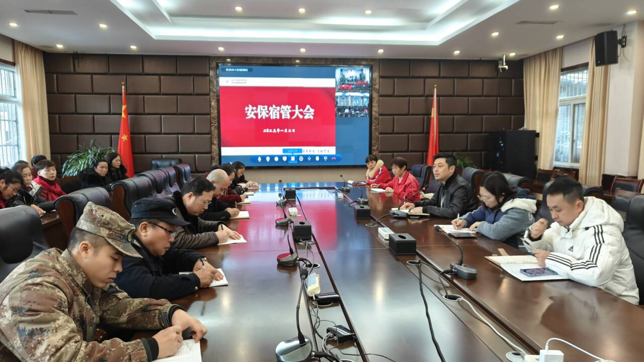 1月2日,学校在两校区以视频会议的方式同时召开安保宿管大会,强化岁末年初安全保卫及宿舍管理,分析研判形势,部署2025年校园安全重点任务。副校长张定国主持会议并讲话。